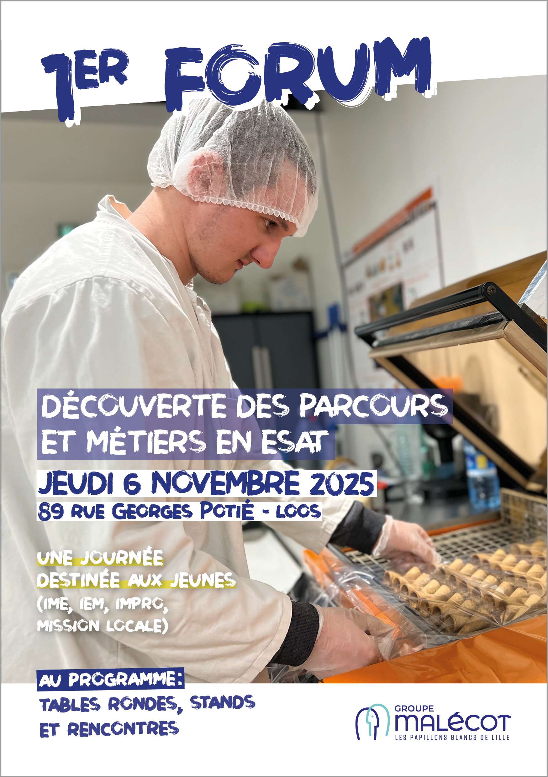Jeudi 6 novembre 2025 à Loos, l’Esat du Groupe Malécot organise un forum « découverte des parcours et métiers en Esat » à destination des jeunes (accompagnés par des IME, IEM, IMPro ou missions locales).